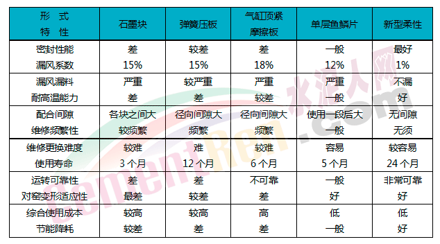 实践证明双柔性式密封与气缸式、鱼鳞片式、弹簧压板式相比,密封效果截然不同,使用双柔性式密封窑尾烟室负压较改造前有明显提高(约200pa左右),烟室温度提高200℃。