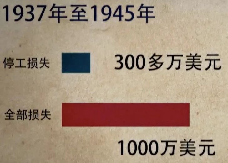 据战后1946年的数据统计,从1937年至1945年,仅工厂停工这一项,损失就高达300多万美元。