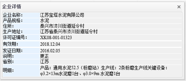 国家质检总局数据显示,这家水泥厂拥有2条水泥粉磨生产线,关键生产设备φ3.2×13m水泥磨、φ3.0×9m 水泥磨各1台。