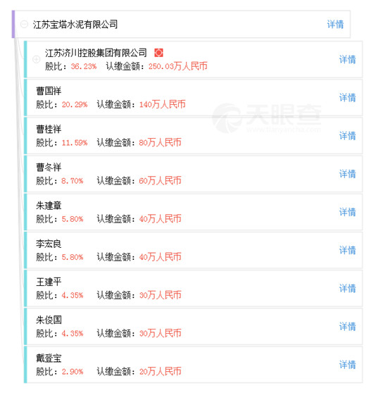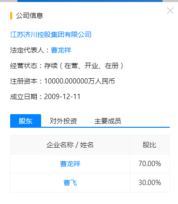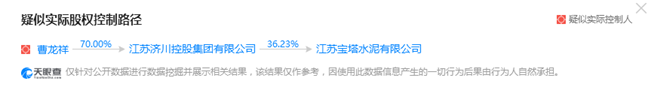 天眼查数据显示:江苏济川控股集团有限公司股比36.23%,曹龙祥股比70%疑似实际控股人。