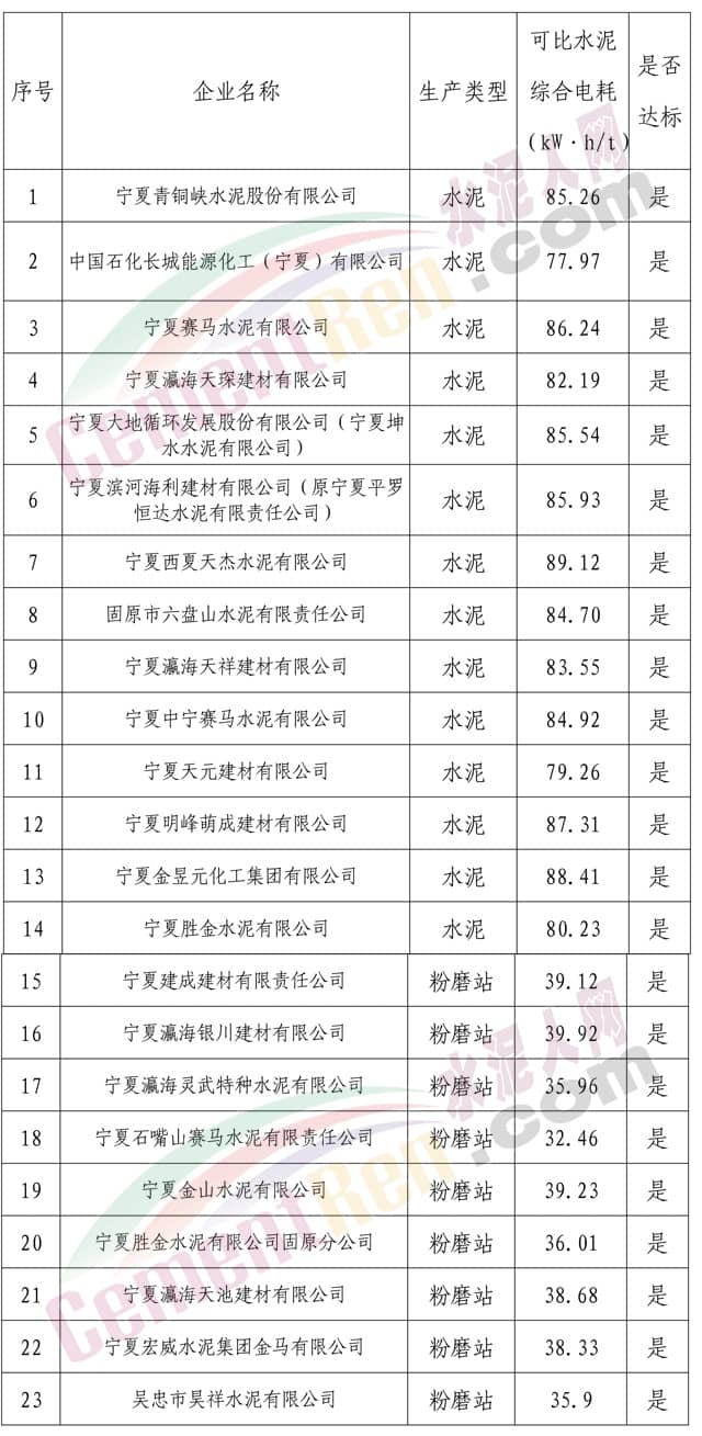 【水泥人网】昨日(21日)自治区经济和信息化委员会发布了《自治区经济和信息化委关于2018年宁夏水泥、钢铁企业阶梯电价专项监察结果公示》公示了2018 年23家水泥企业执行阶梯电价政策专项监察情况表。
