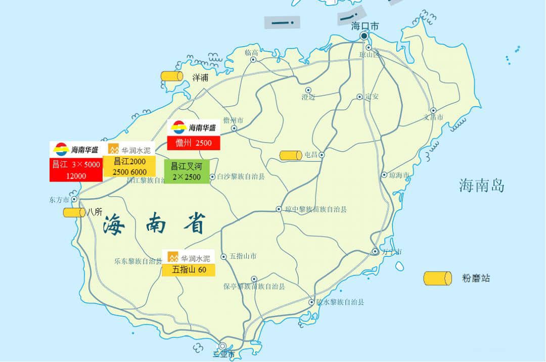 综合来看, 海南岛内主要生产企业为华盛天涯、华润水泥及昌江鸿启等。