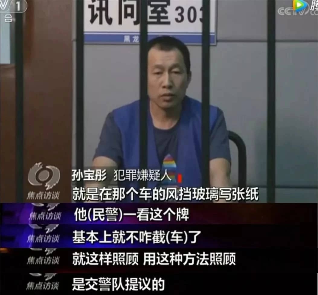 犯罪嫌疑人孙宝彤交待,提前和交警说好,将“福”字当标记,交警见到了这样的标记就等于见到了钱,自然就会对这些车辆选择性执法。