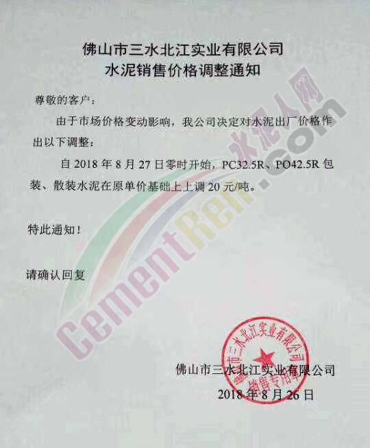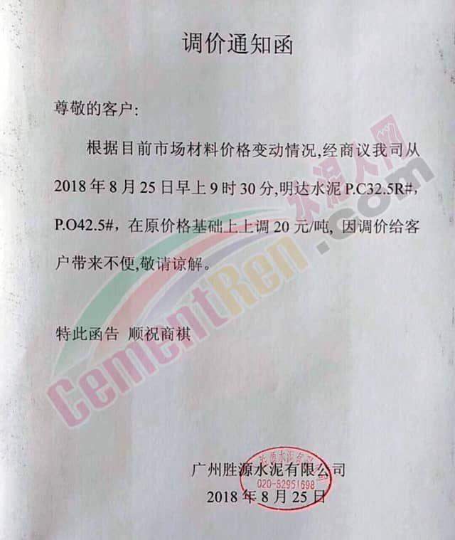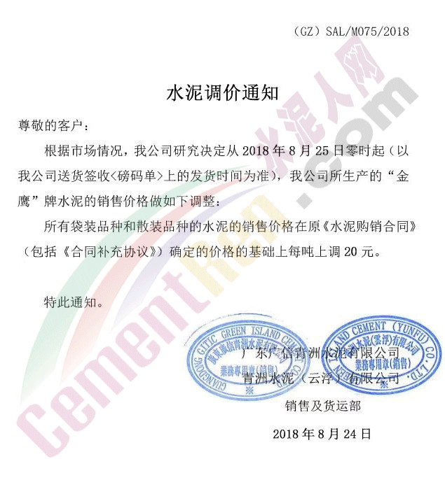 【水泥人网】近几日华南珠三角区域处在一片涨价潮中,先后有二十余家水泥企业发布提价通知。截止昨日晚间,本轮的水泥涨价潮渐近尾声,该涨的品牌都涨了,还没涨的这两天也将跟涨,水泥涨了,砂涨了,混凝土也涨了。