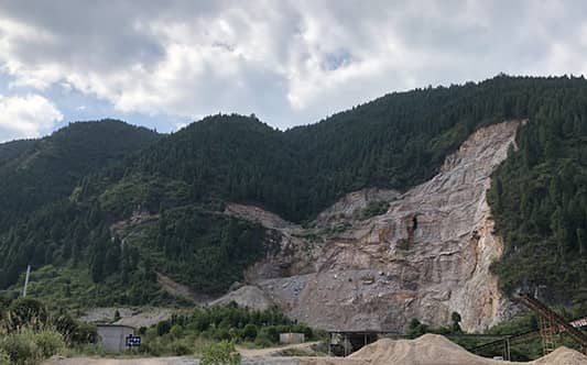 鼎洪砂石厂,山体裸露未挂网覆盖。