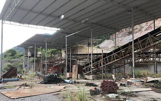 砂石厂设备未拆除,现场荒草丛生,十分凌乱。