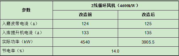 同工况对比下,HL水泥2线循环风机节电率达到14.0%,每小时节电634.5KW,有效降低了HL生产成本、提升了竞争力。