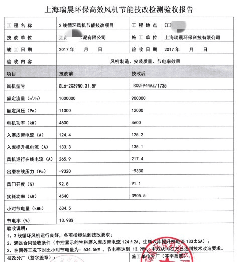 此次项目后,ZL河南区域3家企业等均与瑞晨合作进行了大风机改造,节电率同样值得称赞。