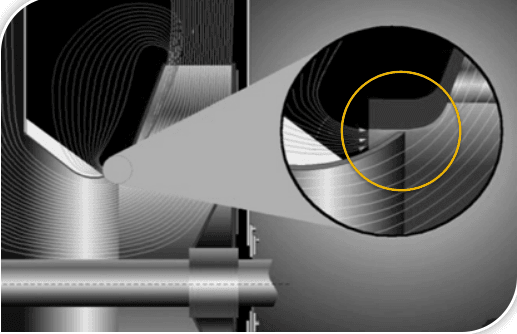 机械加工能力往往制约着设计能力,除工艺技术外,这是制约风机性能的关键因素。风机的做功对象是风(气体),风是见缝就钻的;叶轮是高速旋转的,壳体和风口盘是固定不动的,它们之间怎样做到尽可能的无缝对接?若机加工质量不高,间隙过大,串风,泄压;间隙过小,则易产生摩擦,有损设备,增加功耗。因此,不是谁都能做好高性能离心风机。