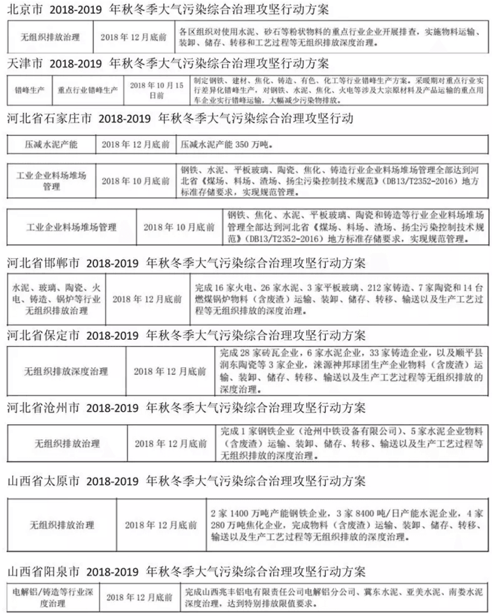 根据该方案相关内容,对京津冀及周边地区,包含北京市,天津市,河北省石家庄、唐山、邯郸、邢台、保定、沧州、廊坊、衡水市,山西省太原、阳泉、长治、晋城市,山东省济南、淄博、济宁、德州、聊城、滨州、菏泽市,河南省郑州、开封、安阳、鹤壁、新乡、焦作、濮阳市(以下简称“2+26”城市,含河北省定州市、辛集市,河南省济源市)2018~2019年秋冬季大气污染综合治理进行了明确的规定。