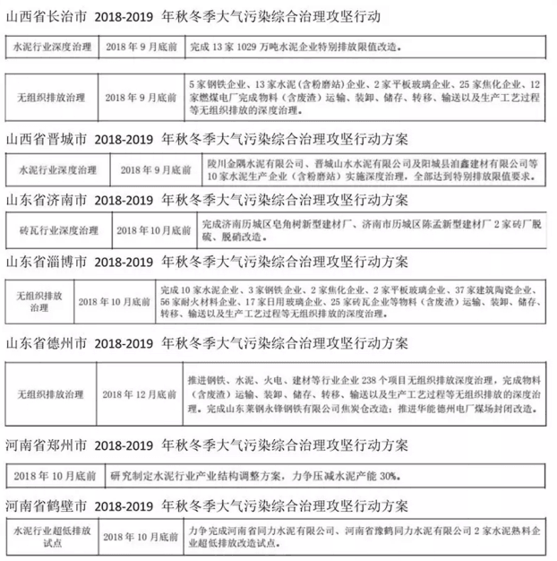 自2018年10月 1 日起,严格执行火电、钢铁、石化、化工、有色(不含氧化铝)、水泥行业以及工业锅炉大气污染物特别排放限值(见附件),推进重点行业污染治理设施升级改造。继续推进工业企业无组织排放治理,在安全生产许可条件下,实施封闭储存、密闭输送、系统收集,2018 年 12 月底前基本完成。