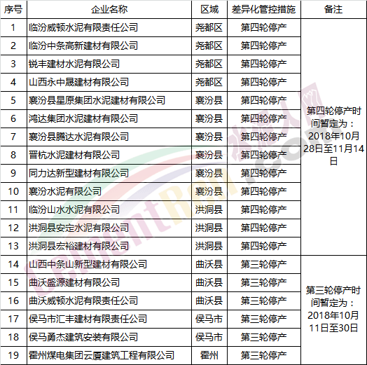 河北省邯郸市《2018-2019年重点行业采暖季差异化错峰生产方案》征求意见稿公示版发布,其中针对水泥行业错峰生产政策措施有重大调整。