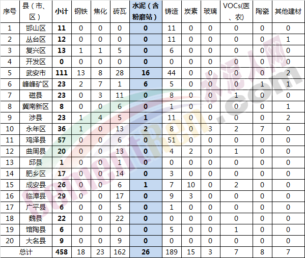 注:各县(市、区)进一步核实本区域10个重点行业错峰生产企业底数,未上报按漏报计,采暖季一律停产。