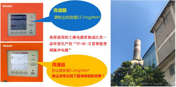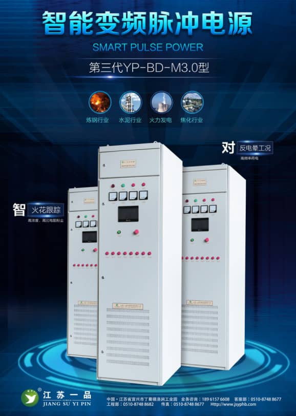 在确定选用电改电方案前,我们对除尘电源进行了专项考察,查阅了国内外先进的除尘电源技术,考察了国内多家除尘电源生产企业,经技术专业比较,多方论证,最终选择了由江苏一品环保研发生产的与国外先进除尘电源技术同步的“YP-BD-M型智能变频脉冲电源”。