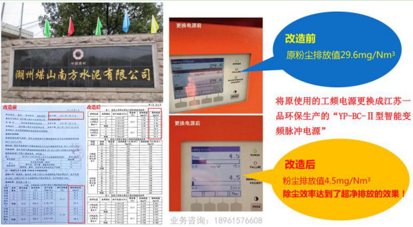 我们生产线原使用控制电源为工频,功率偏小,电源技术采用简单的直流波形输出,运行电压偏低,对粉尘荷电效率不高,无法有效解决高比电阻粉尘及应对反电晕工况,只能满足国家原来的排放标准,在新的排放标准下,根本无法达标排放。水泥窑电除尘器,要想提高除尘效率,达到超低排放,除尘器本体的技术改造是重要基础,但是除尘电源的选择,却是重要的关键因素,除尘电源的技术先进与否,关系到整体除尘效率核心问题!