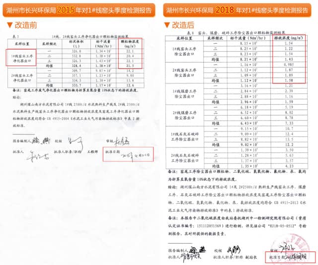湖州槐坎南方水泥改造前后数据对比