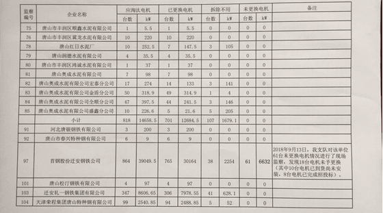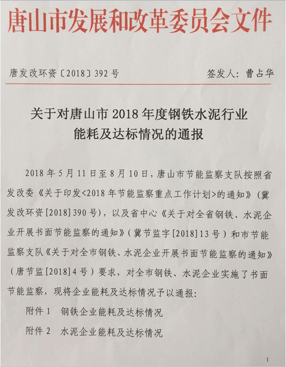 唐山市发改委发布《关于对唐山市2018年度钢铁水泥行业能耗及达标情况的通报》(下简称《通报》)。《通报》指出唐钢集团、唐钢不锈、首钢迁钢等37家钢铁企业白灰、焦化、烧结、球团、高炉、转炉、电弧炉工序能耗全部达标,唐山市玉田金州实业、唐山安泰钢铁、唐山津西钢铁集团正达钢铁、唐山贝氏体钢铁(集团)公司、唐山贝氏体钢铁(集团)福丰钢铁、唐山市清泉钢铁集团6家钢企停产。