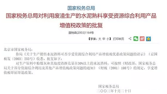 根据中国水泥网信息中心消息,10月24日,国家税务总局发布了《国家税务总局对利用废渣生产的水泥熟料享受资源综合利用产品增值税政策的批复》,文内批复表示,对生产原料中粉煤灰和其他废渣掺兑量在30%以上的水泥熟料,可按照《财政部、国家税务总局关于部分资源综合利用及其他产品增值税政策问题的通知》(财税〔2001〕198号)的规定,享受增值税即征即退政策。
