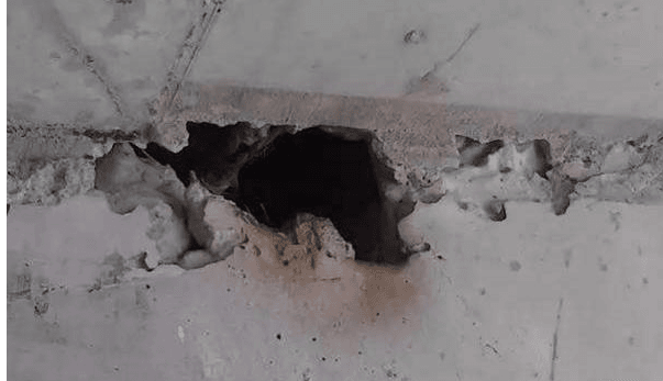 混凝土结构内部有尺寸较大的空隙,局部没有混凝土或蜂窝特别大,钢筋局部或全部裸露。