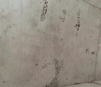 原因: 润泵砂浆及水没有收集到容器内,洒在顶板上。