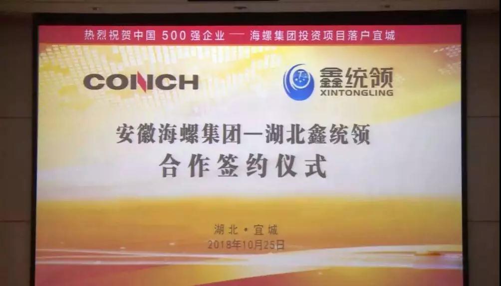 10月25日,安徽海螺集团有限责任公司与湖北鑫统领万象科技有限公司合作签约仪式在宜城市举行。市委书记郭静,市委副书记、市长严广超出席签约仪式。