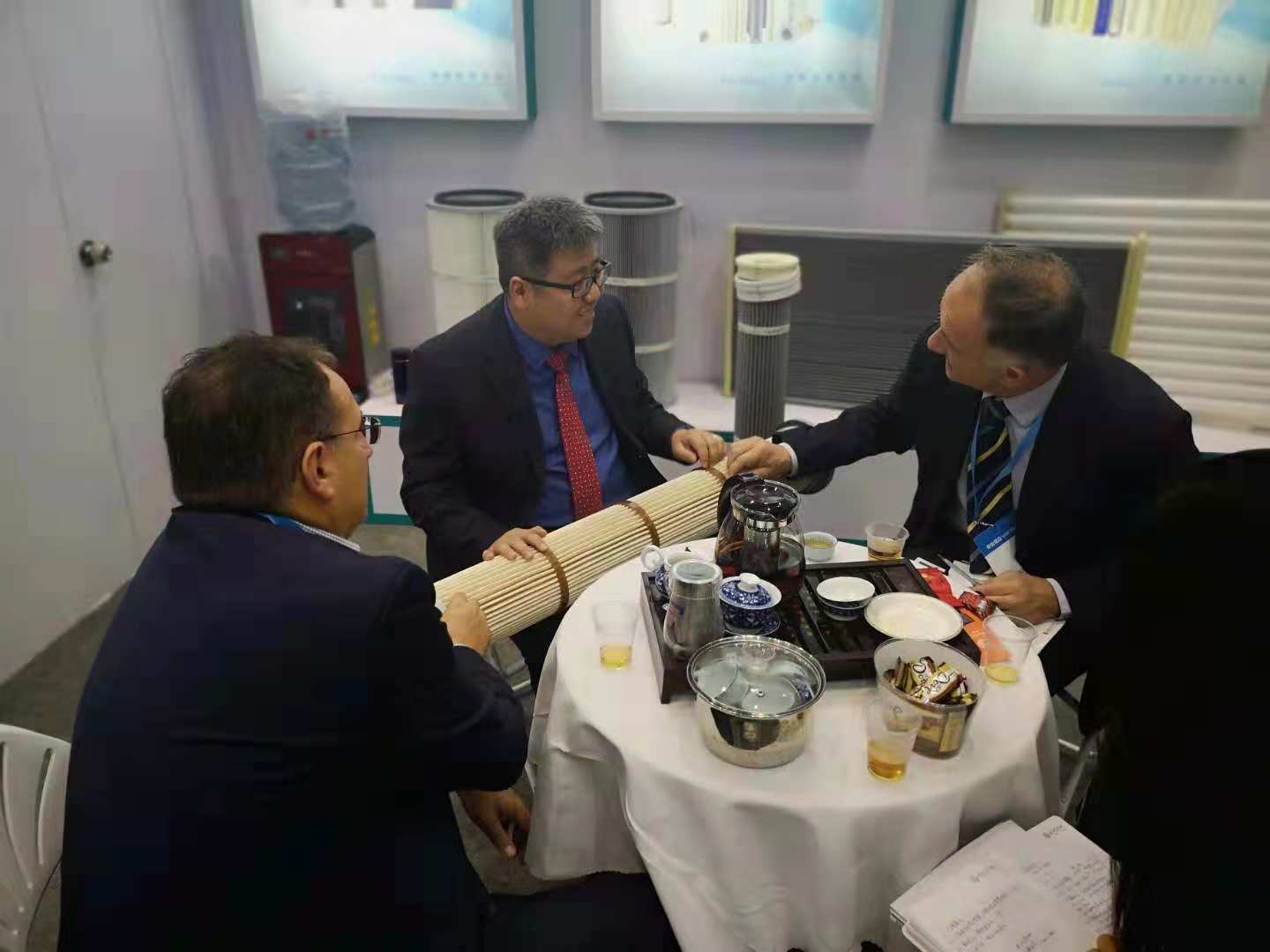 由于华滤环保公司独创的优氪迅®产品,结合了袋式除尘30年来的技术和发展经验,将袋式除尘的技术与滤筒的结构大胆的结合,推出优氪迅®系列产品,满足常温,中常温及高温的应用产品。展会期间还得到了袋委会秘书长姚群,陈司长等的密切关注,并在现场针对优氪迅®做了简要技术说明和应用情况。