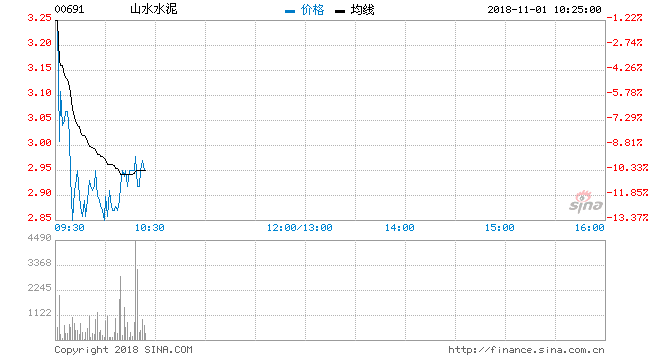 新浪港股讯,山水水泥(00691)现价跌12.77%,报2.87元;成交约100万股,涉资305万元。
