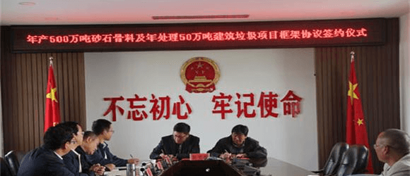 10月30日,云南省弥渡县人民政府与云南恒中建筑工程有限公司在县政府会议室举行签约仪式,签订弥渡恒中年产500万吨砂石骨料及年处理50万吨建筑垃圾项目框架协议书。