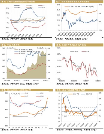 今年全年水泥价格呈现出高位震荡、季节性波动降低的特点,需求南方显著好于北方,符合我们年初的判断。近期由于市场对2019年需求预期调整,以及水泥板块前期累计涨幅较高,板块估值整体回调,目前H股水泥行业平均估值7.1/1.1倍前瞻市盈率/市净率,低于历史平均。我们维持对水泥行业基本面的判断,四季度推荐关注盈利确定性高、水泥价格稳步推涨的海螺水泥(00914)