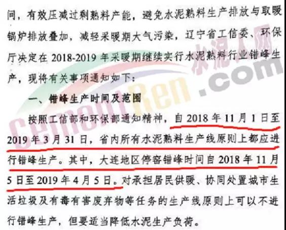 本月开始多省市开始执行中央文件——错峰生产,辽宁地区工信委和环境保护厅也在之前联合发文,辽宁地区自11月1日起至2019年3月31日执行错峰生产。在执行错峰生产期间,水泥人网编辑人员发现辽宁省大部分水泥企业、粉磨站企业都能积极响应省经信委、环保厅的指示精神,积极执行错峰生产,而辽宁大鹰水泥旗下2家子公司,丹东大鹰一条5000t/d熟料生产线,阜新大鹰2条熟料生产线,一条2500t/d,一条3200t/d的熟料生产线,朝阳兰陵水泥1条1000t/d,锦州三鸽1条4000t/d熟料生产线以及辽宁抚顺水泥2000t/d熟料生产线无视政府文件,拒不执行省级错峰生产,生产如火如荼的在进行中。