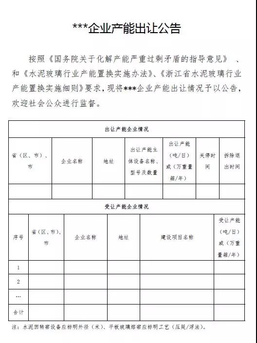 7 跨市置换产能,需转出地和转入地经信部门分别核实确认并公告。其中跨省的转让需两地省级工业和信息化主管部门分别核实确认并公告。《浙江省水泥玻璃行业产能置换实施细则》全文如下: