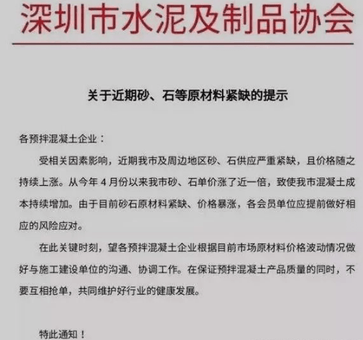 协会发文警示,砂石等原材料上涨近一倍
