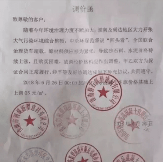 淮南,安徽省下辖地级市,位于安徽省中北部,地处长江三角洲腹地,淮河之滨,素有“中州咽喉,江南屏障”之称,是沿淮城市群的重要节点,合肥都市圈核心城市。即使有这样的优越地理条件,在中央环保监督下,全国联合治理货车超载中,当地砂石、水泥价格依然持续上涨,且购买困难,当地砼企为了避免恶性竞争,保证混凝土质量,所有混凝土在原价格基础上上调35元/方。