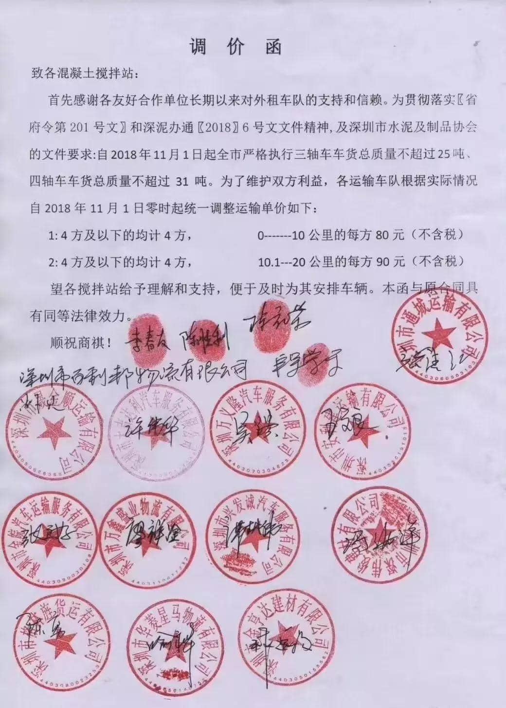 深圳市17家物流运输公司联名发布涨价通知称:因为目前深圳市将严格执行三轴车车货总质量不超25吨、四轴车车货总质量不超31吨。因此,将运输单价做如下调整: