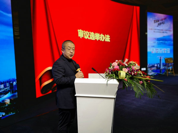 北京砼享未来工程技术研究院总工程师马永胜宣读《中国散装水泥推广发展协会混凝土专业委员会选举办法》(草案)。