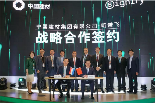 博览会期间,宋志平还见证了凯盛科技与昕诺飞(原飞利浦照明)战略合作协议的签署仪式。在与昕诺飞全球CEO洪岸礼交流中,宋志平表示面向新时代,中国企业广泛接受全球分工合作的模式,更加重视发挥各自所长,实现多方合作共赢。洪岸礼对此非常赞同,他强调在中国建材全面推进智慧农业的过程中,昕诺飞将提供专业的服务和技术保障。双方表示将发挥各自优势,在智慧农业补光技术集成及项目推广上进行深度合作,全力打造新时代中国智慧农业的样板工程。