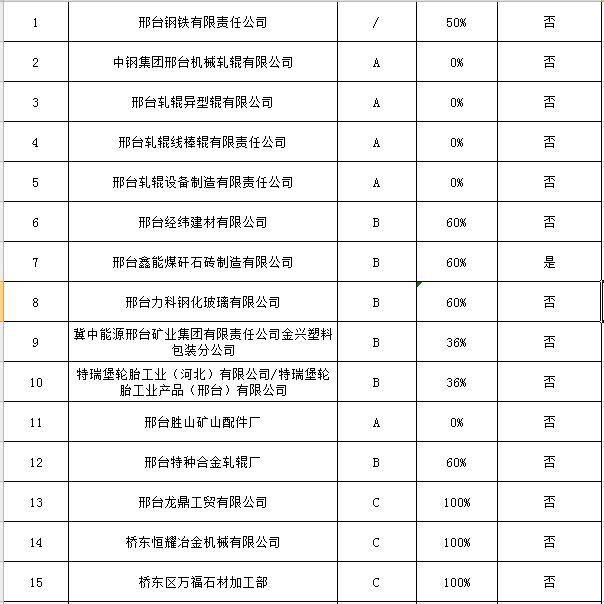 为切实改善秋冬季环境空气质量,邢台市以民生优先、质量导向、错峰与应急相结合为原则,制定了《邢台市重点行业秋冬季差异化错峰生产绩效评价实施方案》。该市大气污染防治工作领导小组办公室近日组织相关技术专家,对“三区一县”依法取得排污许可证、污染物稳定达标排放且在线监测数据真实有效、符合现行行业产业政策的相关企业,根据其污染物排放标准、运输结构合理程度、产品质量及档次等状况,核定A、B或C绩效评价等级及在采暖季错峰生产比例。