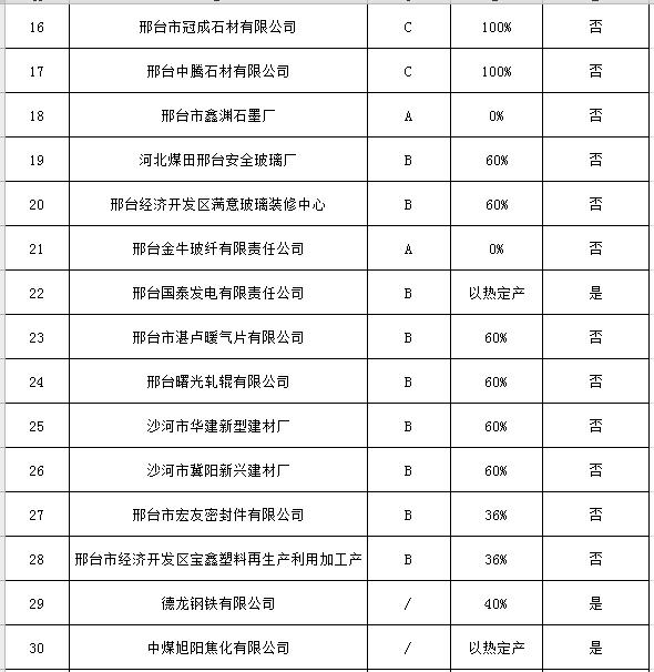 日前,邢台市公布“三区一县”秋冬季重点行业差异化错峰生产企业名单,桥东区、桥西区、经济开发区和邢台县的42家铸造、建材、橡塑等重点行业企业,要在采暖季实施差别化错峰生产。