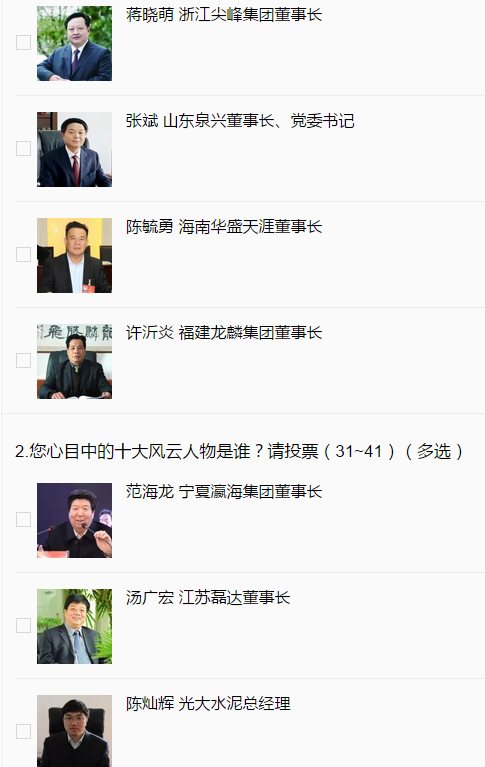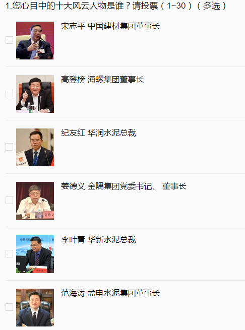 代表性:评选覆盖了整个水泥工业的精英、管理层、专家