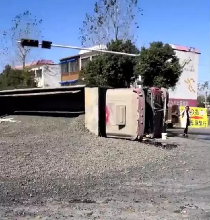 在肖店村旁边等红绿灯时,被同样自西向东的拉水泥熟料货车侧翻压倒。据旁边一卖甘蔗的女士说,大货车为躲避一骑摩托男子猛打方向盘,导致翻车,正好踏在小车上,由于熟料温度高烫手,抢救困难。