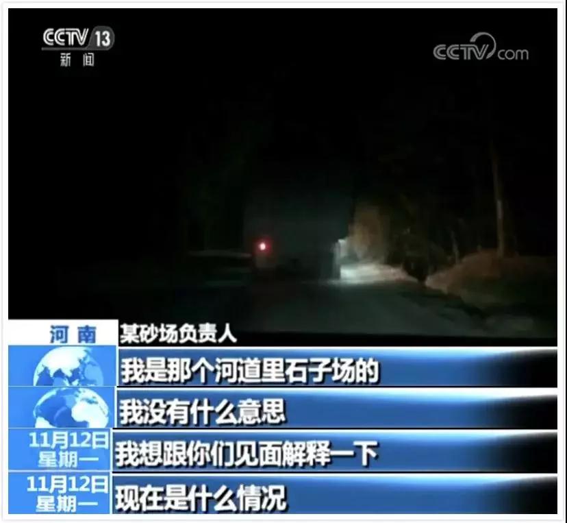 10月30日凌晨2点,记者在鲁山县荡泽河岸边发现,河道里大货车排成了队,几台挖掘机不停地把砂堆里的砂往车上运。而这种见不得光的非法采砂行为,在当地管理部门看来却有另一种说法。