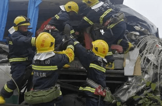 事故发生后,宜宾江安县消防救援力量出动14名消防员到场施救。事故现场一辆渝A牌照客车撞上应急车道上的水泥罐车,客车右前方一片狼藉,撞碎的车辆零部件下有三人被死死卡住。遗憾的是,经现场救护人员初步诊断三名被困者已身亡。