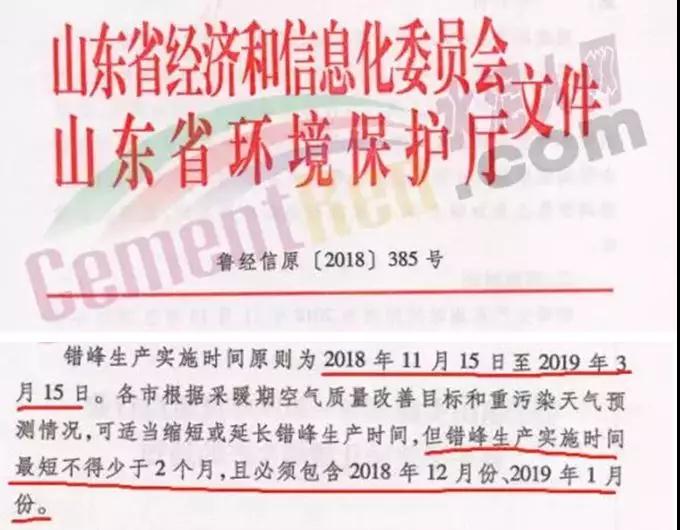 近日山东省经信委和环保厅联合发布《关于组织实施2018-2019年度重点行业秋冬季差异化错峰生产的通知》。通知要求:错峰生产实施时间原则为2018年11月15日至2019年3月15日,各市根据采暖期空气质量改善和重污染天气预测情况,可适当缩短或者延长错峰生产时间,但错峰生产实施时间最短不得少于两个月,且必须包含2018年12月和2019年1月。