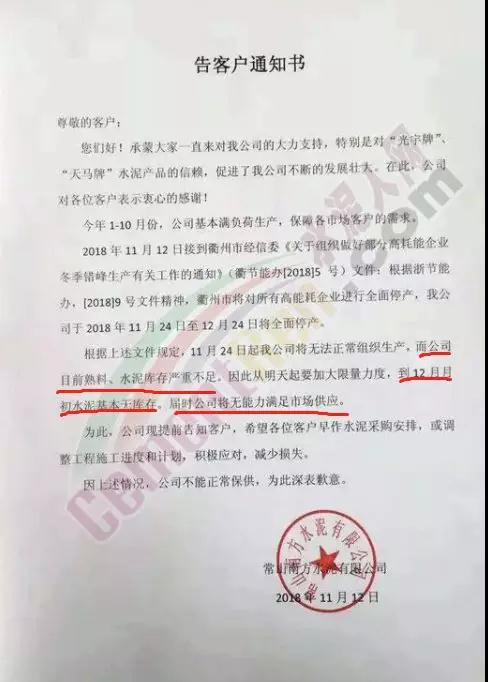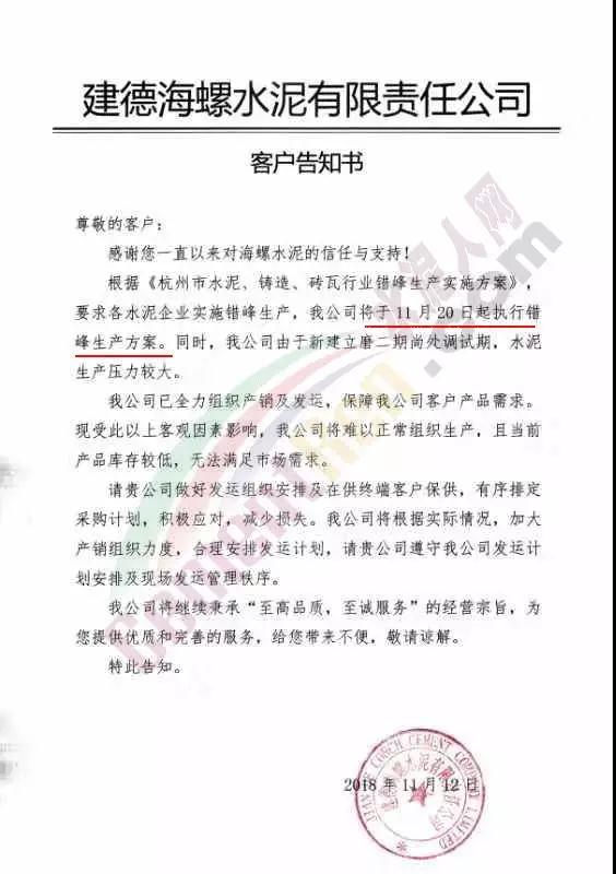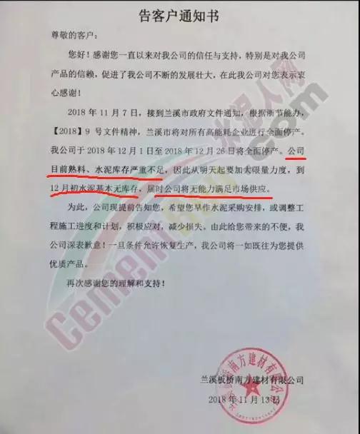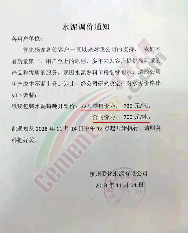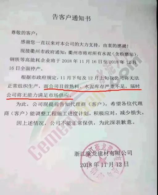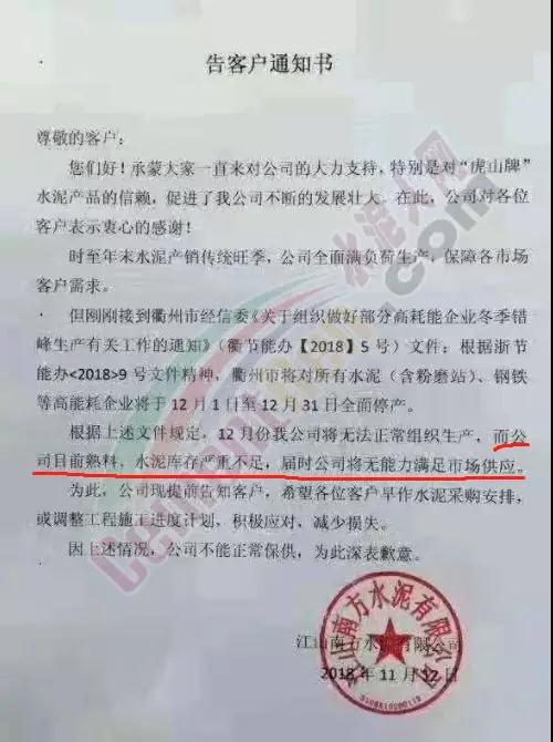 在此轮停产之际,各地竟然出现了水泥库存严重不足的情况,兰溪南方水泥、常山南方水泥、浙江豪龙水泥、江山南方水泥、建德海螺水泥等众多企业发布未来断货风险提示,而浙江联化32.5水泥涨价到730元/吨,可谓天价水泥扑面而来。