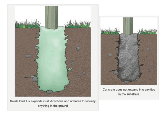 由瑞士公司开发的黑色技术泡沫称为Sika Post Fix。这是一种膨胀型聚氨酯泡沫,专门用于安装栅栏和其他地面支撑。它可以快速固化高强度材料,它是一个979毫升液体的小袋子,但可以承受60公斤的混凝土。它是两种预混合聚氨酯树脂的组合。