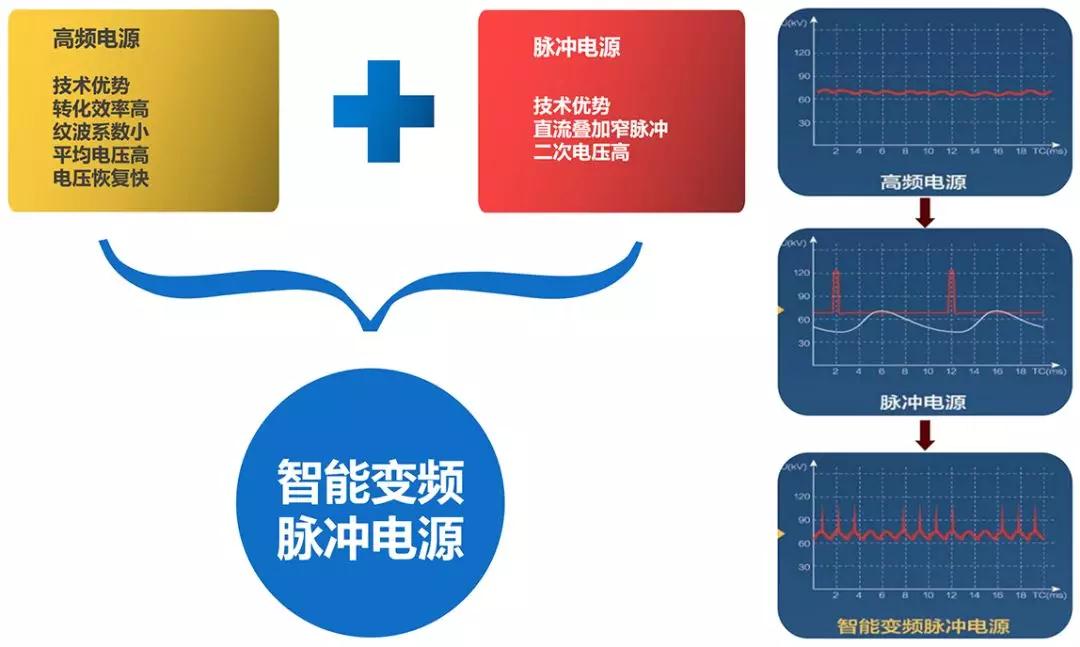 ▲ 智能变频脉冲电源输出电压纹波系数通常小于5%,远低于工频电源35%-45%的纹波百分比;