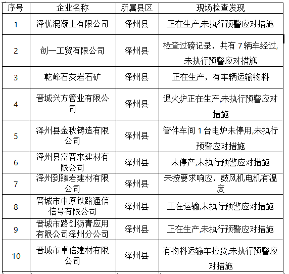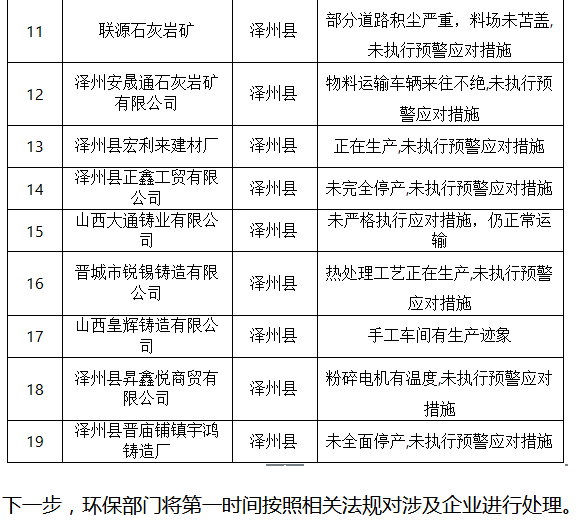 重污染天气期间 晋城19家企业不限产停产被点名通报!