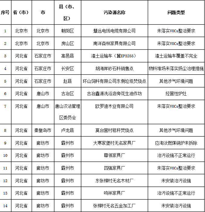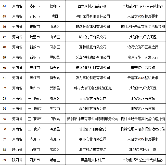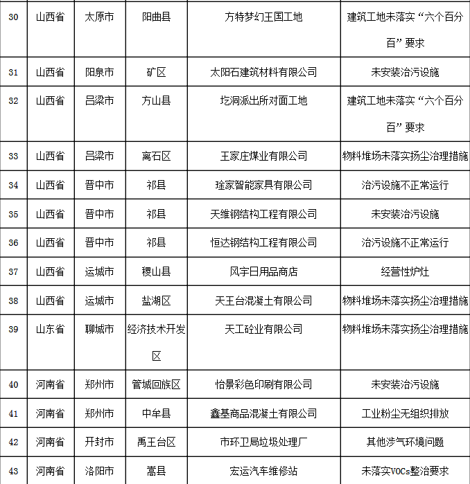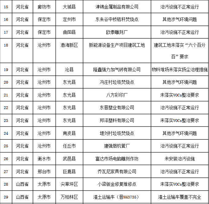 11月17日强化监督发现涉气环境问题汇总表