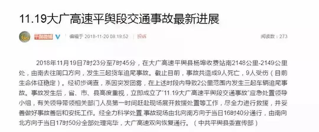 经初步调查,因突发团雾,在上述时段内导致2公里范围内发生3起车辆追尾事故。