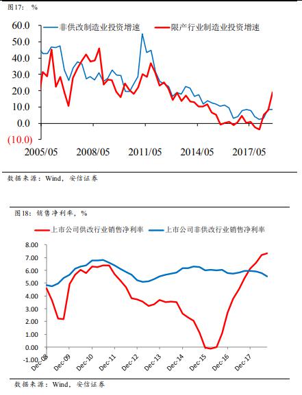 目前的关键问题是,这个回升将持续到什么时候。我们认为,这可能要等到供改行业的销售净利率回到相对正常的水平。目前来看,这个过程还将延续一段时间。因此,即使明年的非供改行业的制造业投资出现下降,供改行业的制造业投资依然保持高水平,形成对冲,导致制造业投资的下滑幅度可能并不会太大。